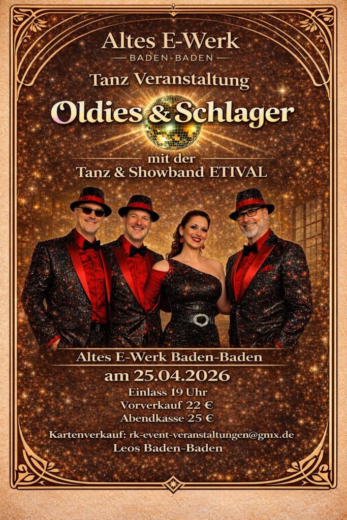 Wenn das Alte E‑Werk in Baden‑Baden seine Türen öffnet, verwandelt sich die historische Location in einen pulsierenden Treffpunkt für alle Fans von Oldies, Schlager und unvergesslicher Live‑Shows. Am 25.04.2026 steigt die Große Oldie- und Schlagernacht – ein Abend, der garantiert niemanden auf den Stühlen sitzen lässt.